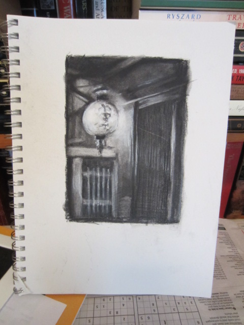 For the print, the image I’m using is from a trip to Kyoto I took years ago. I worked out a sketch and then reversed the hand-drawn image on the computer to use as a reference while working the plate. I then drew the image on to the plate using the reversed reference. The thing to remember in printmaking is whatever is created on the plate will print in reverse. I wanted to keep the composition the same as in the drawing so I went through the effort to reverse it for the plate.